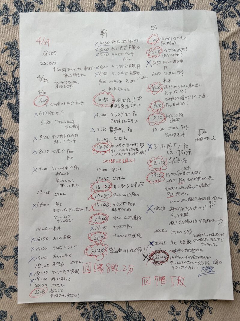 長くなりましたが、ジンジャーのトイレトレーニングの様子と排泄の回数をご紹介しました。