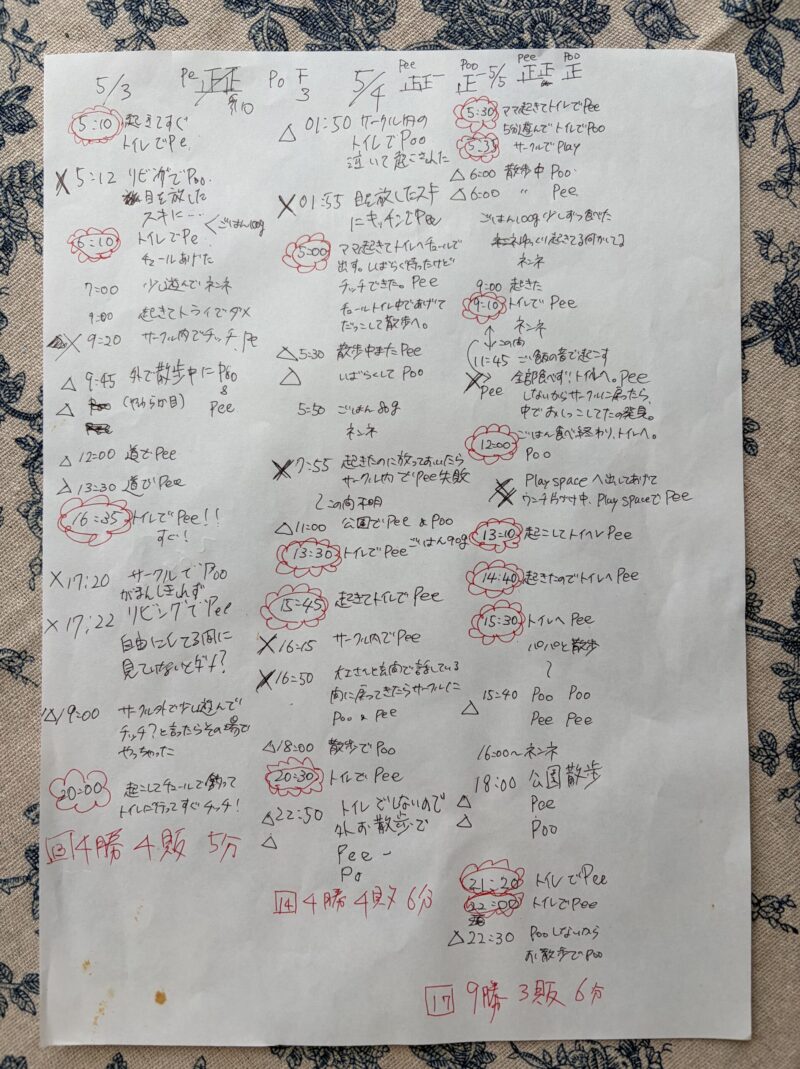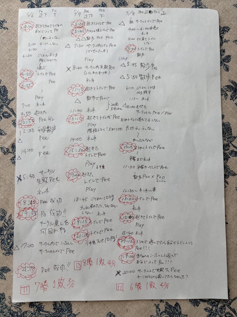 この頃はオシッコウンチの殆どが花丸になってきましたが、まだポツポツと失敗も。