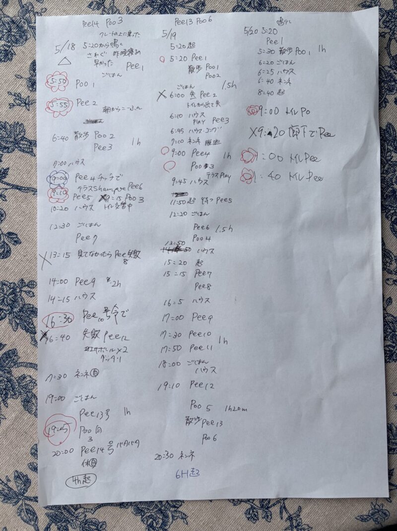 オシッコ12回、ウンチ5回。