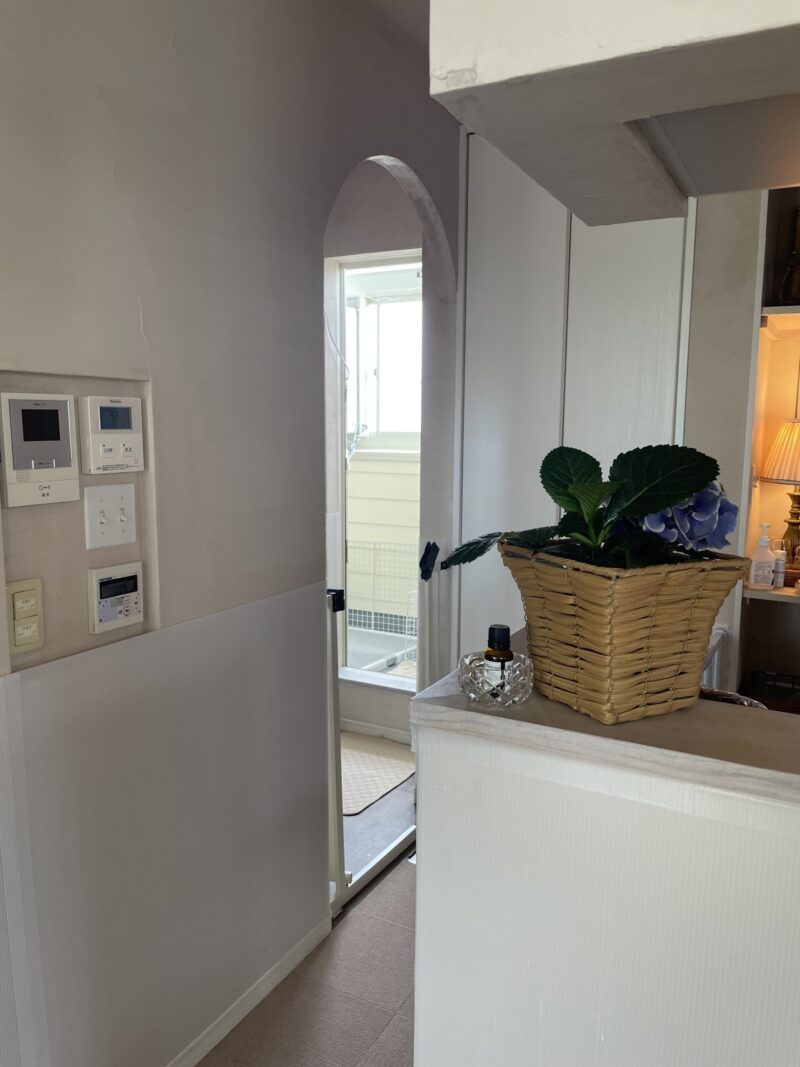 キッチン横のトイレまでの通路は壁をプラ板で養生しました。